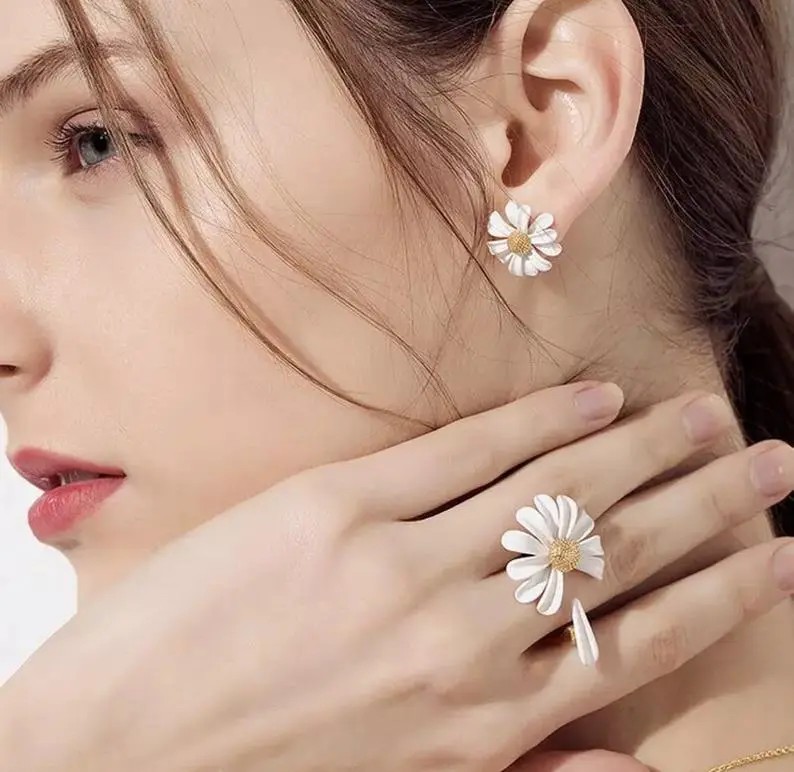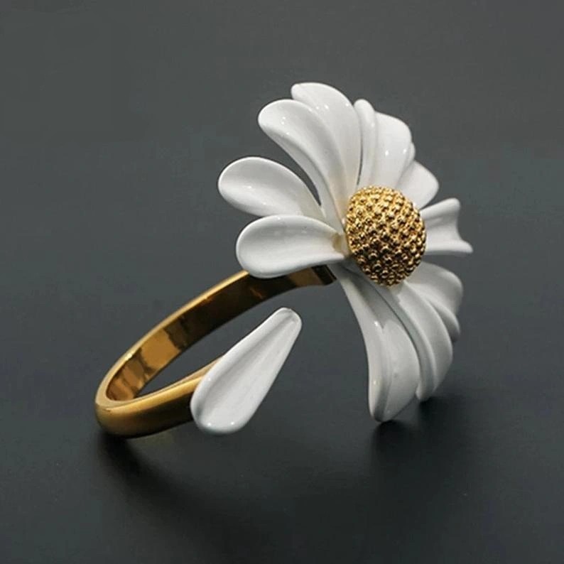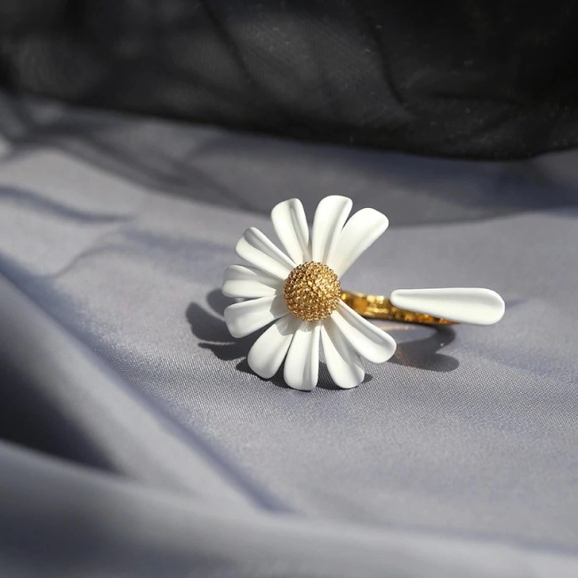 Avec sa marguerite pleine de charme, cette bague illumine la main d’une touche naturelle et raffinée.