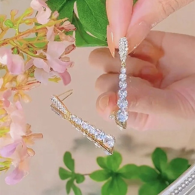 Ces boucles d’oreilles pendantes en strass sont parfaites pour illuminer une tenue de mariage ou de cérémonie.