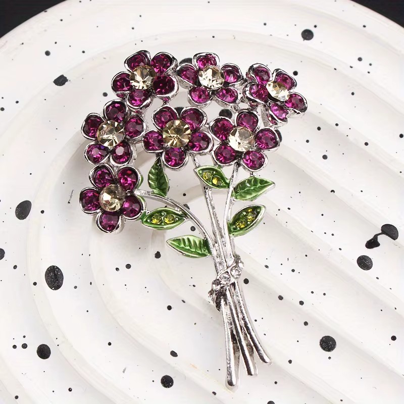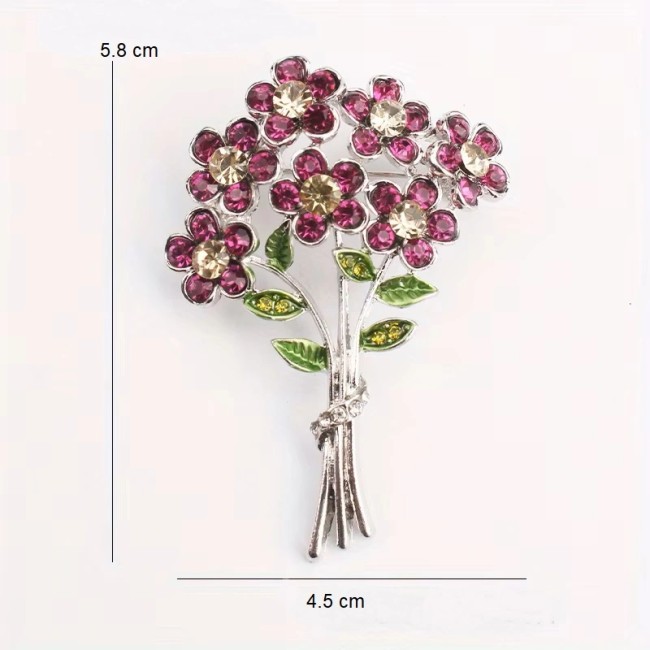 Apportez une touche de fraîcheur et d’élégance à votre tenue avec cette broche fantaisie en forme de bouquet de fleurs. Ses pétales sertis de strass roses et jaunes captent joliment la lumière, tandis que ses feuilles vertes ajoutent une note naturelle et raffinée.