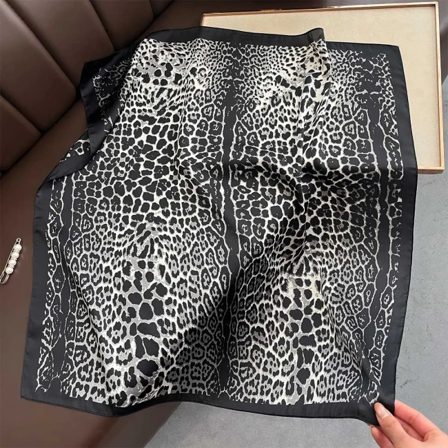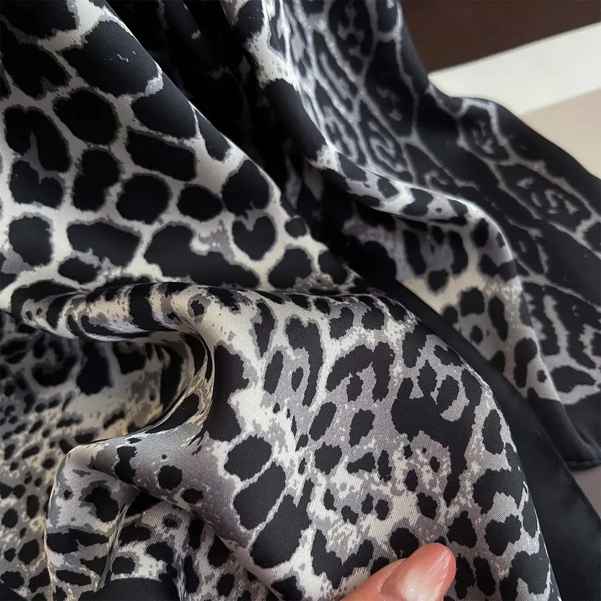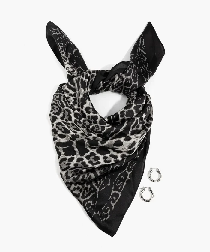 Avec son imprimé léopard revisité en version noir et gris, ce foulard apporte une note élégante et moderne à vos tenues.